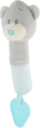 To plišasto piskalo z grizalom združuje več funkcij v eni igrači za dojenčke. Zahvaljujoč mehki tekstilni površini je prijetno za držanje tudi v majhnih rokicah, vgrajeno piskalo pa z nežnim zvokom spodbuja sluh in pozornost. Silikonsko grizalo pomaga pomiriti občutljive dlesni med izraščanjem zob.