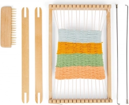 Ta leseni statve je idealen za otroke, ki želijo preizkusiti ročno tkanje tkanin. Izdelan je iz visokokakovostnih materialov s certifikatom FSC\u00ae, kar zagotavlja trajnostne prakse gozdarstva. Orodje pomaga razvijati ne le spretnost, ampak tudi koncentracijo in potrpežljivost.