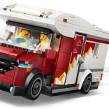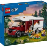 Odpravite se na sanjske izlete s setom LEGO City počitniški avtodom. Odprt notranji del skriva sodoben bivalni prostor s kuhinjo, straniščem, pogradoma in posteljico, ne manjkajo miza in stoli za zunaj in znotraj, kitara ter kurišče. Dodajte minifigurice mame, očeta in dojenčka ter uživajte v kreativni igri in pripovedovanju zgodb vsak dan.