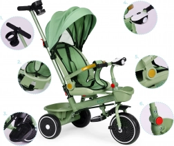 Multifunkcionalni otroški tricikel ECOTOYS združuje voziček in kolo v enem. Ponuja vrtljiv sedež 360°, odstranljivo strešico, varnostne pasove in starševsko vodenje. Zahvaljujoč vzdržljivim EVA kolesom, jeklenemu okviru in bogati opremi (luč z zvoki, košarice, držalo za pijačo) zagotavlja udobne in varne vožnje za otroke od 6 mesecev do 6 let.