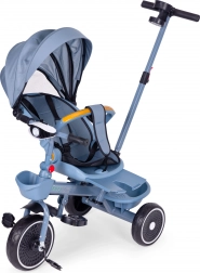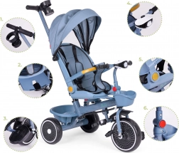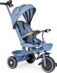 Ta večnamenski trimobil združuje udobje vozička in zabavo klasičnega trimobila. Vrtljiv sedež omogoča vožnjo mlajših otrok obrnjeno proti staršu, starejši pa uživajo vožnjo v smeri vožnje. Stabilna jeklena konstrukcija, nastavljivo naslonjalo in nastavljivo krmilo zagotavljajo ergonomijo in varnost v vsaki razvojni fazi.