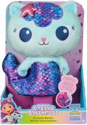 Spoznajte čarobni svet z plišasto Sireno Mačko iz serije Gabbyjeva hiša punčk. Ta 25 cm dolga igrača je popolna za otroke za igro in spanje. Opremljena je z izjemno mehko kosmato površino in bleščečim repom, ki se premika ob pritisku na trebuh, pripravljena na ples ob vsaki priložnosti. Otroci lahko raziskujejo svoj lasten svet z vrsto likov, dodatkov in dekorjev.