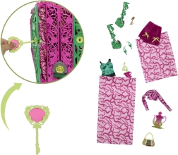 Odprite vrata omare, zberite tri dele talismana in ga potisnite navzgor, da se punčka MONSTER HIGH »prikaže«. Več kot 19 presenečenj prinaša veselje ob razpakiranju in nove igralne scenarije.
