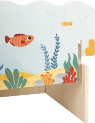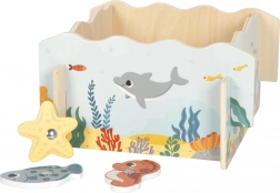 Ta kakovostna lesena magnetna igra z morskim motivom je namenjena za 1–2 igralca. Otroci z magnetnimi palicami lovijo ribice, morske konjičke ali morske zvezde, jih obrnejo z oznako točk navzgor in na koncu seštejejo osvojene točke. Preprosta pravila, kratke runde in privlačne barve naredijo igro idealno izbiro za predšolske otroke.