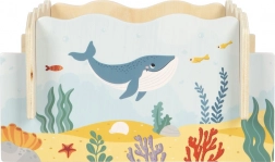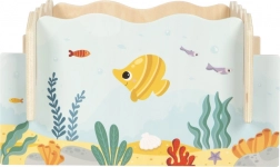 - 2 magnetni leseni palici, 10 morskih živali, 4 vpenjajoče se stranske plošče (igralno polje)