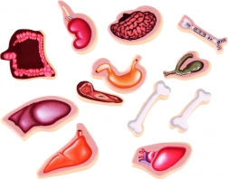 Barvni koščki v obliki organov in kosti otroke učijo osnov anatomije in spodbujajo radovednost.