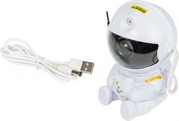 Oblika sedečega astronavta z magnetno pritrjeno, povsem vrtljivo glavo (360°) omogoča, da projekcijo usmerite natanko tja, kjer najbolj zažari. Projektor je odlična dekoracija za dnevno sobo in otroško sobo, z napajanjem prek USB pa ga zlahka priključite na napajalnik, powerbank ali računalnik.