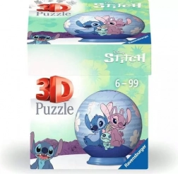 3D Puzzle Ball znamke Ravensburger prinaša natančne plastične kose, ki se brezhibno prilegajo zaradi posebnega ukrivljenja. Po sestavljanju dobite trdno in odporno kroglo z priljubljenima likoma Stitch in Angel, in to popolnoma brez potrebe po lepljenju.