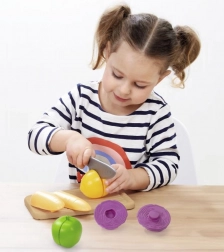 Osvojite umetnost rezanja in kuhanja s tem privlačnim in barvitim igralnim setom. Zahvaljujoč barvitemu in raznolikemu izboru plastične zelenjave si lahko otroci izmišljajo neskončne igre in zgodbe, razvijajo svojo ustvarjalnost in fino motoriko. Set vključuje desko, nož in različne vrste sadja in zelenjave, kot so jabolko, koruza in zelje. Podprite otroško domišljijo in jih naučite osnov kuhinjskih veščin.