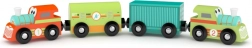 Ta kakovosten set združuje varen naravni material in živahne barve, ki otroke spodbujajo k raziskovanju. Avtomobilčke je zaradi prijetne površine enostavno prijeti, zato so idealni za prve igre poklicev, mesta ali reševalcev. Praktična tuba olajša shranjevanje in prenašanje na poti.
