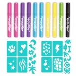 Nadomestne barvne napolnitve za airbrush, idealne za male ustvarjalce! Vsebuje 10 živahnih barv in 20 različnih šablon, ki spodbujajo otroško domišljijo.