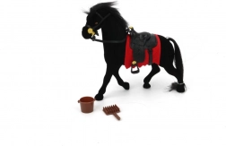 Del seta je konjiček z rdečo podlogo in sedlom, dopolnjen z rjavim vedrom in krtačo, ki spodbujata domišljijsko igro.