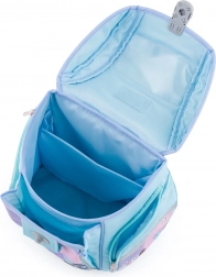 Lahek in praktičen šolski set za male šolarje z višino od 121 cm. Glavna aktovka tehta le 970 g, ponuja ergonomsko oblazinjeno hrbtišče, prsni in zatezne naramnice ter bogato organizacijo z magnetnim zapiranjem. Del seta sta tudi peresnica in vreča za copate z usklajenim motivom kolibrija.