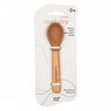 Žlička iz linije New Baby Trendy ponuja elegantno kombinacijo lesa in silikona, kar omogoča preprosto in varno hranjenje najmlajših.