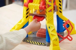 Set Rubble & Crew: Žerjavni stolp vsebuje realistično zasnovan žerjavni stolp, enak kot v seriji, z dodanimi gradbenimi orodji primernimi za otroke. Ta stolp vsebuje sistem za oblikovanje kinetičnega peska, ki omogoča izdelavo lastnih gradbenih blokov. Preprosto uporabite ogromno rdečo ročico za sprožitev stiskalnice in ustvarjanje lastnih gradbenih kock.