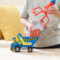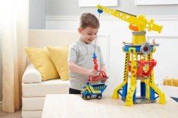 Postavite Rubblea v dvigalo in ga dvignite na vrh stolpa do krmilne kabine žerjava. Uporabite žerjav za dviganje blokov in njihovo premikanje na pravo mesto. Za dodatno presenečenje pritisnite velik rdeč gumb na stolpu za vklop luči in poslušanje zvokov znanih iz serije. Za več zabave poiščite dodatne gradbene tovornjake in figurice iz serije Rubble & Crew.