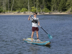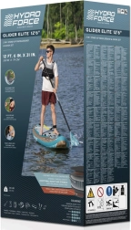 Hydro-Force Glider Elite je zasnovan za dolge in gladke vožnje po mirni vodi. Njegova ozka oblika zagotavlja, da z lahkoto premaguje tudi daljše razdalje. SUP desko je mogoče spremeniti v kajak zahvaljujoč odstranljivemu sedežu in nastavljivi dolžini vesla. V kompletu sta dodatno vključena udobno naslonjalo in pumpa za enostavno napihovanje.