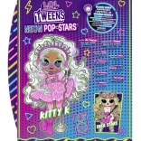 Stopi na oder s Kitty K iz serije L.O.L. Surprise! Tweens Neon Pop Stars – modno punčko, navdihnjeno s pop sceno. Otroci bodo vzljubili njen izrazit videz, dolge vijolično-rožnate lase in bleščeč outfit, ki ga lahko kombinirajo z bogato opremo dodatkov. Zahvaljujoč black light presenečenjem UV svetloba razkrije dodatne učinke in motive, ki igro povzdignejo na novo raven.