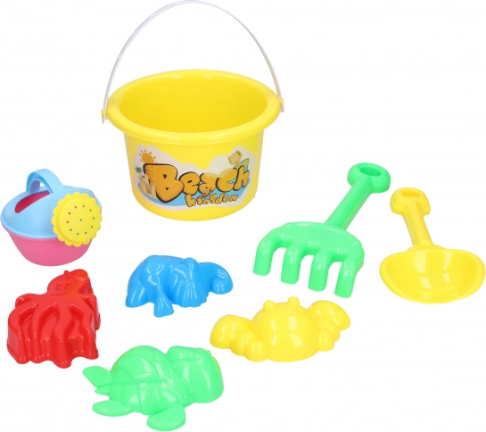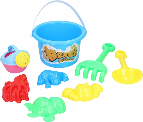 • 8 delov v pakiranju: vedro s potiskom, lopatka, zalivalka, grabljice in 4 modelčki