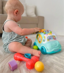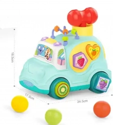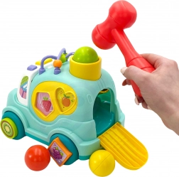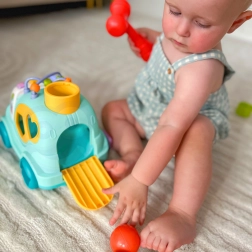 Avtomobilček ima mnogo elementov za manipulacijo in odkrivanje. Otrok lahko uporabi priloženo kladivo, da vstavi barvne kroglice v notranjost avtomobilčka. Kroglice nato izletijo iz zadnje zaklopke, kar otroku prinaša dodatno veselje in presenečenje.