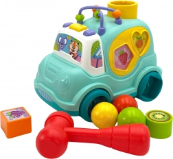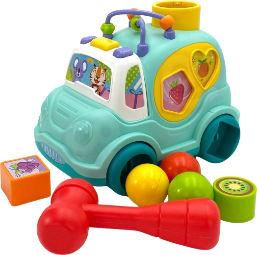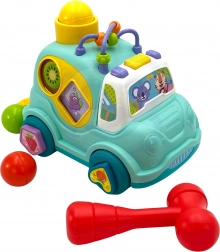 Avtomobilček ponuja mnogo interaktivnih elementov, kot so kladivo in barvne kroglice, ki zvišujejo nivo zabave in razvijajo motorične veščine.