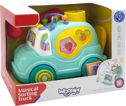 Na straneh avtomobilčka so odprtine različnih oblik, za igro so priložene barvne kocke, ki se prilegajo v te odprtine. Otrok lahko igra igro prilagajanja kock po obliki, kar mu pomaga razvijati koordinacijo rok-oči ter prepoznavanje barv in oblik.