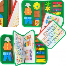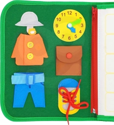 - 6 plasti z raznolikimi aktivnostmi. Vsaka plast ponuja edinstvene naloge, kot so učenje barv, števil, abecede, geometrijskih oblik, ur, dni v tednu, zgodb in zapenjanja gumbov.