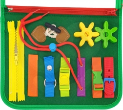 - Odstranljive plasti Montessori. Osrednje plasti table je mogoče preprosto odpeti z zadrgo za individualno igro.