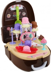 Mali slaščičar vedno pripravljen! Ta ljubek set v obliki nahrbtnika se po odprtju spremeni v popolno sladoledarno in mini trgovinico. Otroci lahko strežejo kepice sladoleda, polnijo kornete in prodajajo sladke dobrote prijateljem in staršem. Zaradi lahke konstrukcije ga zlahka odnesejo na igrišče, k babici ali na počitnice.