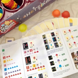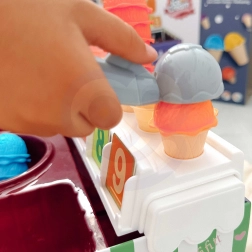 Vključuje kepice sladoleda, kornete, naročilne kartice in denar ter spodbuja računanje in domišljijsko igro.