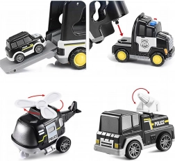 - Transportni vlačilec (laweta) + 4 policijska vozila: oklepnik, cisterna z vodnim topom, helikopter, radiovozilo