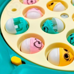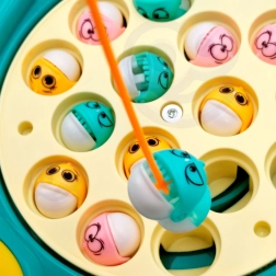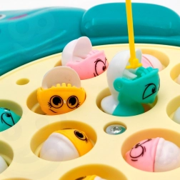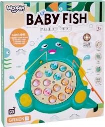 Stavite na hitrost, pozornost in natančnost? Zeleni dinozaver skriva vrteči se ribnik, poln barvitih ribic, ki se odpirajo in zapirajo. Vaša naloga je s palico ujeti čim več ribic, preden se krog konča – zabaven izziv za male in velike ribiče.
