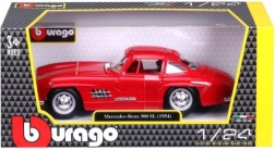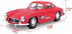 Doživite čar zgodovinske elegance s kovinskim modelom Mercedes Benz 300SL v rdeči izvedbi. Ta model v merilu 1:24 znamke Bburago ponuja verodostojne podrobnosti in natančno izdelavo.