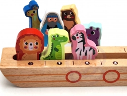 Igra Tooky Toy na temo Noetove barke otrokom omogoča, da po vzorcih iz priložene knjižice sestavljajo lesene figurice živali. Vsaka figurica ima dve strani, ena je obrnjena v desno, druga v levo, kar dodaja raznolikost in kompleksnost učenju. Naloga igralca je pravilno postaviti vse figurice na ploščo glede na izbrano nalogo, pri čemer mora uporabiti logično mišljenje za določitev pravilnega položaja in smeri posameznih živalic.