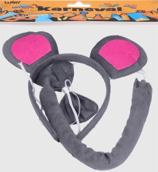Ljubek pustni komplet miš za otroke in najstnike. Set vključuje uščesa na obroču, mašnico okoli vratu in repek – samo nadenete in pripravljeni ste na pust, zabavo ali šolsko prireditev.