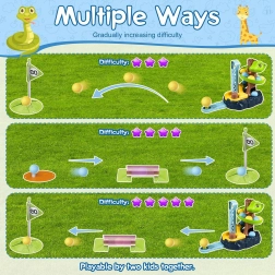 - Preprosta pravila, velika zabava: spusti, meri, premagaj ovire in zadeni luknjo