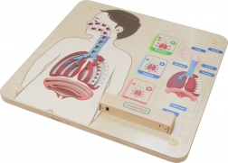 Interaktivna učna tabla prikazuje pot zraka v telesu in vključuje realistične ilustracije dihalnega sistema z učinki svetlečih diod.