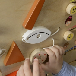 Tablo je enostavno uporabljati v okvirju na steni ali samostojno na mizi ali tleh. Je robustna, varna in idealna za pristop Montessori k učenju prek čutne in praktične aktivnosti.