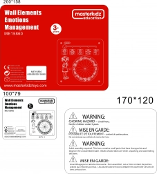 Ta kakovostna lesena stenska tabla Masterkidz razvija čustveno inteligenco in socialne veščine. Otrok s pomočjo vrtljivega kolesa izbere čustva in išče načine, kako nanje reagirati (npr. ob žalosti poslušanje glasbe, ob jezi umirjanje z dihanjem). Tablo je mogoče uporabljati na steni v okviru ali prosto na mizi oziroma tleh, zato je primerna za otroške sobe, vrtce in centre za preživljanje prostega časa.