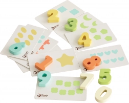 Barvite številke in tematske kartice učijo otroke razlikovati števila, razumeti količine in povezovati simbol s številom – zabavno in intuitivno.
