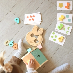 - Vse v enem: sortirnik, številke s karticami, kocke in prevezovalni zajček.
