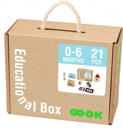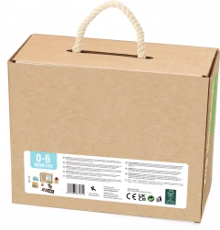 TOOKY TOY predstavlja leseno izobraževalno škatlo 6v1, ki je zasnovana tako, da spodbuja celostni razvoj vašega otroka. Ta škatla vključuje različne igre, ki spodbujajo zanimanje in učenje pri otrocih od 0 do 6 mesecev.