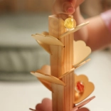 Leseno glasbeno drevo, znano kot kroglično drevo, spremeni vsak spust kroglice v pomirjujoč koncert. Pisani »listi« tvorijo pot, po kateri kroglice drsijo navzdol in ob vsakem dotiku ustvarjajo prijetne, nežne tone. Igrača spodbuja zbranost, potrpežljivost in naravno radovednost.