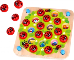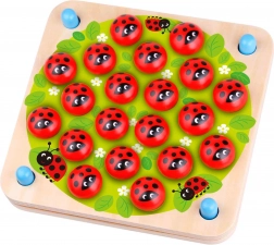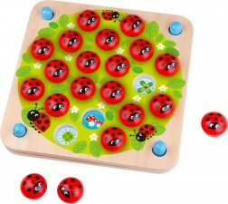 Trdna lesena plošča in robustne marjetice so lakirane z netoksičnimi barvami. Igra prenese intenzivno otroško uporabo.
