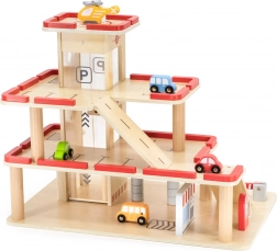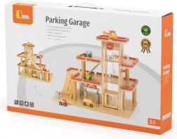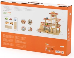 Odkrijte leseno parkirno garažo VIGA za otroke od 3 let – robusten trietažni komplet z ročnim dvigalom, avtopralnico in heliportom. Vključuje 4 avtomobilčke in helikopter, realistične podrobnosti ter vzdržljivo leseno izvedbo za kreativno igro in razvoj fine motorike.