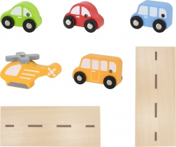 - 4 leseni avtomobilčki, leseni helikopter