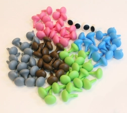 Set vsebuje 64 zatičev, od tega je 12 zatičev v 5 osnovnih barvah in 4 posebni zatiči, ki spominjajo na oči.