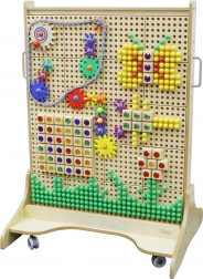 Zahvaljujoč mobilni osnovi s kolesci lahko tablo zlahka premaknete tja, kjer je trenutno potrebna. Je popolnoma združljiva s širokim naborom dodatkov MASTERKIDZ za STEM table (zatiči, “kristali”, vijaki, zobniki, cevi, črke in številke itd.), zato lahko učenje in igro sproti nadgrajujete.