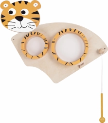 Odkrijte ustvarjalni svet zvokov s stensko ploščo TIGRČEK, ki bo postala privlačno središče vsake igralnice ali učilnice. Igra na različne zvočne elemente naravno razvija motoriko, ritem in slušne spretnosti otrok. Zaradi lesene izdelave in varnih materialov je idealna izbira za vsakodnevno uporabo.
