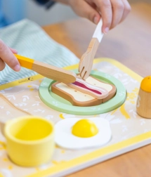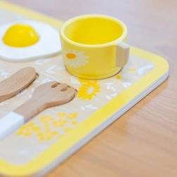 Dovolite svojim otrokom, da se potopijo v toplo in ustvarjalno zabavo z lesenim zajtrkovalnim setom Classic World. Ta set ne ponuja le veliko možnosti za igro, temveč pomaga otrokom razvijati tudi socialne spretnosti in dobre navade pri mizi. Idealen je za otroke od 3 let in vsebuje krožnik, pribor, skodelico, sol, poper, jajce, popečene kruhke, rezino slanine, prtiček in pladenj za serviranje.